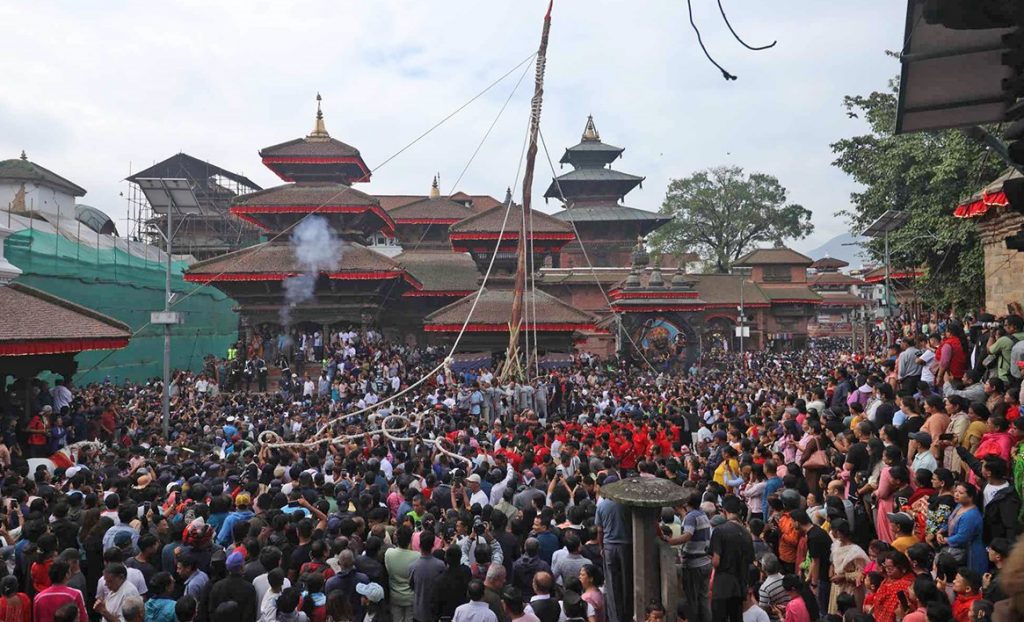 ललितपुर । यसपालीको इन्द्रजात्रा पर्व विधिवत् रुपमा सुरु भएको छ । भाद्र शुक्ल यँलाथ्व द्वादशीका दिन आइतबार हनुमानढोका अगाडि धार्मिक विधिपूर्वक इन्द्रध्वजा सहितको लिङ्गो ठड्याइए पछि यो जात्रा सुरु भएको हो । आइतबार शुभ साइत अनुसार विहान ८ बजेर २६ मिनेटमा लिङ्गो ठड्याइएको इन्द्रजात्रा व्यवस्थापन समितिले जनाएको छ ।