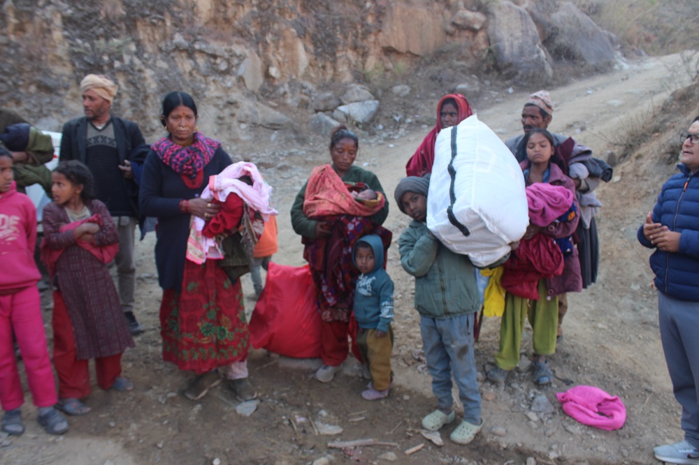 बाजुरा । जगन्नाथ गाउँपालिका–५ की मुगा दमाई सुत्केरी भएको पाँच ११ दिनको बालक समाएर बसेका बेला भुकम्पले घर हल्लायो एकै छिनमा घर चिरा चिरा भयो उनी बालकलाई छातिमा टाँसेर घर बाहिर निस्किन् । उनी मात्रै नभई गाउँमा सबै कराउँदै बाहिर निस्केका थिए । उनी बिहानबाट गाउँपालिकाले दिएको पालमा नाबाललाई लिएर बस्न लागिन् । गाउँले अरु पनि पालमा बस्ने ब्यवस्था गाउँपालिका मिलायो ।
