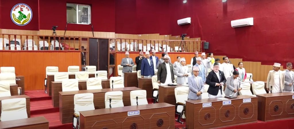 सुर्खेत । सोमबार कर्णाली प्रदेशसभाको चालू अधिवेशनको छैटौँ बैठक आव्हान गरिएको थियो । बैठकमा नेपाली कांग्रेसका प्रमुख सचेतक हिक्मतबहादुर विष्टले कर्णालीका सडकका ’boutमा सार्वजनिक महत्वको प्रस्ताव पेस गर्ने, मुख्यमन्त्री यामलाल कँडेलले महालेखाको सातौँ वार्षिक प्रतिवेदन सभासमक्ष पेस गर्ने कार्यसूची थियो । दिउँसो ३ बजेका लागि तय गरिएको बैठक सभामुख नन्दा गुरुङले प्रारम्भ गरिन् । तर, संसदमा फरक दृश्य देखियो । प्रतिपक्ष बेञ्च खाली थियो ।