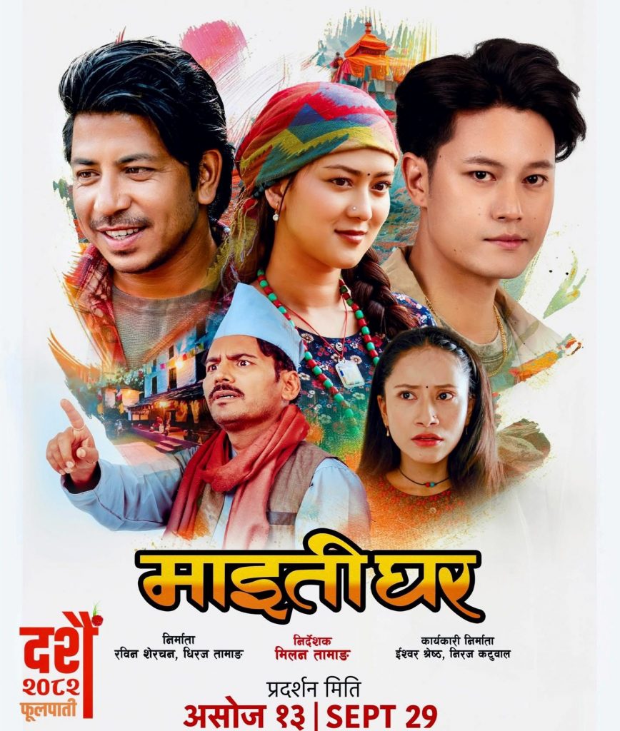 यस्तै ‘हरिबहादुरको जुत्ता’सँगै रिलिज हुने अर्को चलचित्र ‘माइतीघर’को फस्टलुकमा चलचित्रको शीर्ष कलाकारलाई समेटिएको छ । यसको फस्ट लुक्समा कलाकारहरूको पात्र चित्रण गर्न खोजिएको छ । केदार घिमिरे, धिरज मगर, प्रकाश सपुत, उपासना सिंह ठकुरी, श्यामा श्री शेर्पालाई पोस्टरमा समेटिएको छ । यो चलचित्रमा बुद्धि तामाङ, युवराज लामा, शिशिर वाङ्देल, रजनी गुरुङ, सन्तोष शाही, फूलकुमार बमजन, संगीता थापा लगायतका कलाकारहरूको पनि अभिनय छ ।