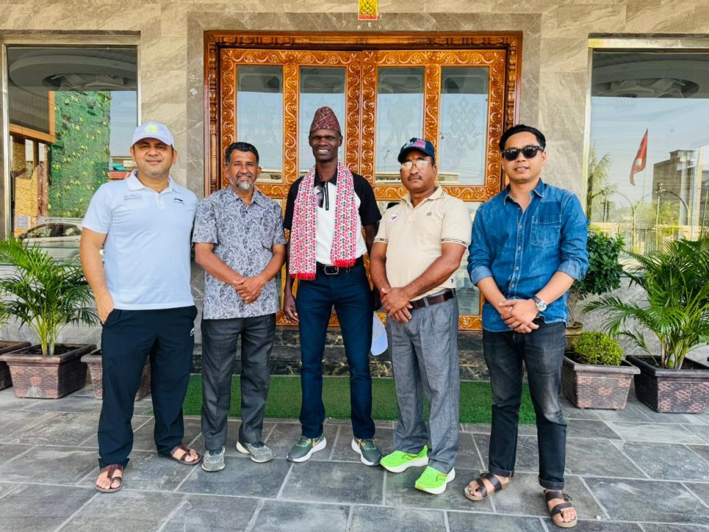 धारा नेपालगन्ज म्याराथनका संस्थापक टीएस ठकुरी, रेस डाइरेक्टर चन्द्रबहादुर गुरुङ र संस्थापक सदस्य भिम ओलीले लिजेन्ड धावक जोनलाई स्वागत गरे ।