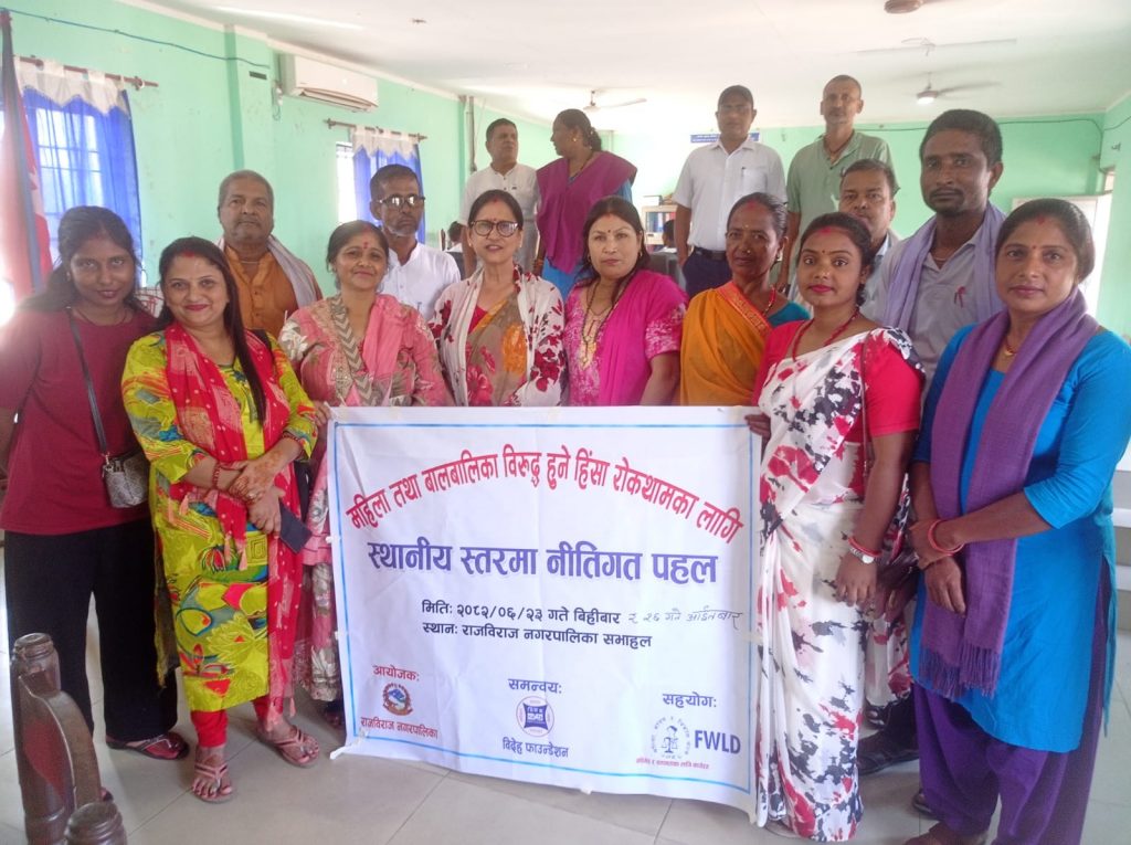 महिला तथा बालबालिका क्षेत्रमा काम गर्दै आएको विदेह फाउण्डेशनको समन्वय, महिला कानुन विकास मञ्चको सहयोग र राजविराज नगरपालिका तथा महादेवा गाउँपालिकाको आयोजनामा आ–आप्mनै पालिका कार्यालयमा आयोजित सरोकारवाला सहितको बैठकले उक्त निर्देशिका पारित गरी प्रभावकारी ढंगले कार्यान्वयन गर्ने प्रतिबद्धता समेत जनाएको छ ।