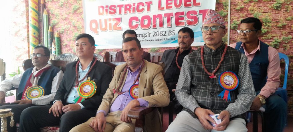 सुन्दरहरैंचा (मोरङ) । राष्ट्रिय निजी तथा आवासीय विद्यालय एसोसिएसन नेपाल (नेसनल प्याब्सन) मोरङले जिल्ला स्तरीय हाजिरी–जवाफ प्रतियोगिता सम्पन्न गरेको छ । बेलबारी बहुमुखी क्याम्पसको सभाहलमा आयोजित प्रतियोगितामा मोरङ जिल्लाभरिका १८ वटा निजी विद्यालयहरूको सहभागिता रहेको थियो ।