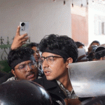 कालोपट्टी बाँधेर सिंहदरवार गेटअगाडि मिरज ढुंगाना समूहको प्रदर्शन