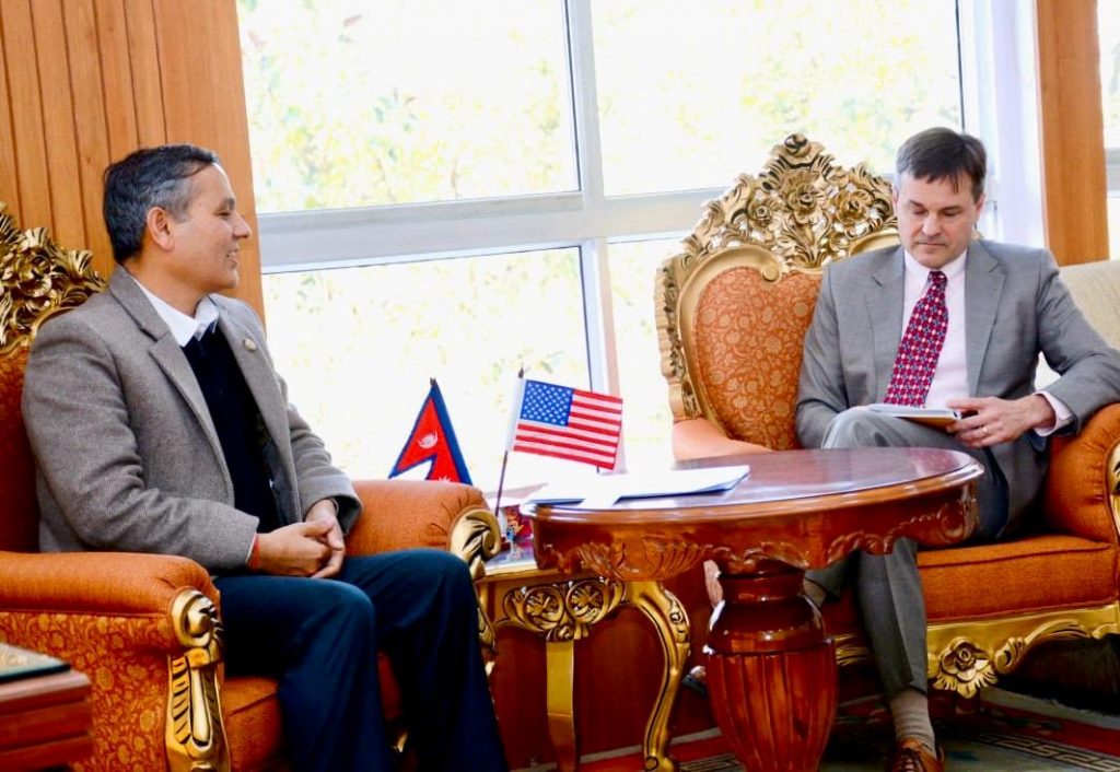 काठमाडौं । गृहमन्त्री ओमप्रकाश अर्यालसँग नेपालका लागि अमेरिकी कार्यवाहक राजदूत स्कट अर्बमले शिष्टाचार भेटवार्ता गरेका छन् । गृह मन्त्रालयमा आज भएको भेटमा उनीहरूबीच पछिल्लो राजनीतिक परिस्थिति, चुनाव र अमेरिकाले नेपालमा गरेको सहयोग र सहायताका ’boutमा छलफल भएको छ ।