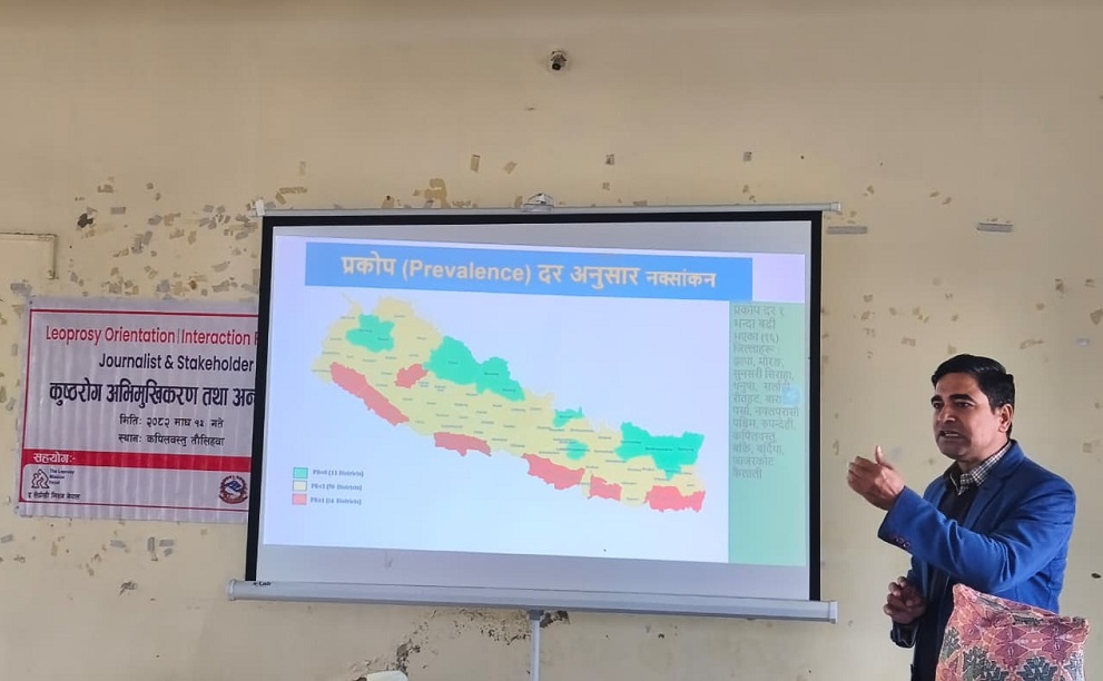 ७३औँ कुष्ठरोग दिवसको अवसरमा स्वास्थ्य कार्यालय कपिलवस्तुले आयोजना गरेको अन्तरक्रिया कार्यक्रममा रोगको अवस्था’bout जानकारी दिँदै प्रमुख ढकालले विगतका वर्षहरूको तुलनामा कुष्ठरोगीको संख्यामा केही कमी आएको भए पनि समस्या अझै पूर्ण रूपमा समाधान नभएको बताउनुभयो।