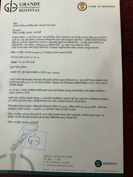 अछामबाट नेपाली सेनाको हेलिकोप्टरबाट उद्धार गरी सुर्खेत हुँदै काठमाडौं ल्याइएका सिटौला उपचाररत अस्पताल ग्रान्डीले आइतबार मृत घोषणा गरेको हो । अस्पतालका अनुसार उनको आइतबार १२ः४५ मा मृत्यु भएको हो ।