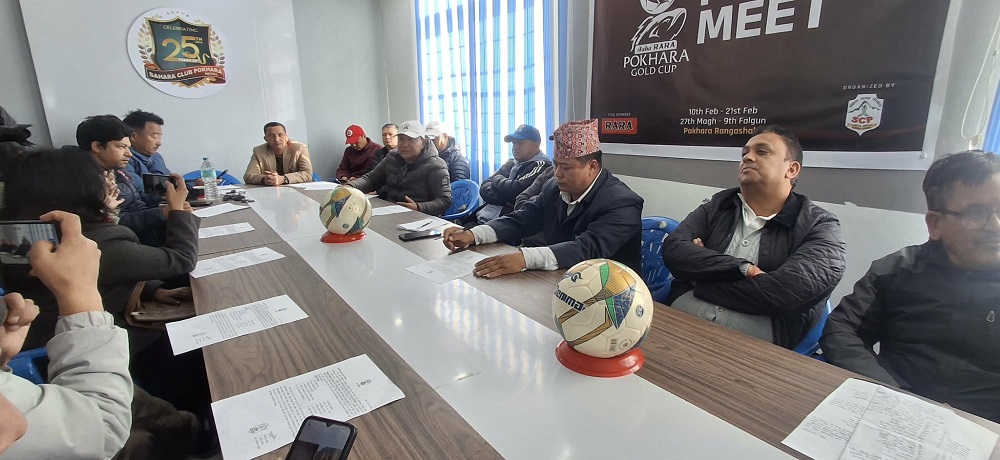 पोखरा । सहारा क्लब पोखराद्वारा आयोजित २५औं संस्करणको आहा रारा पोखरा गोल्ड कप फुटबल प्रतियोगिता आगामी सातादेखि सुरू हुँदैछ । २७ माघदेखि ९ फागुनसम्म पोखरा रंगशालाको खेल मैदानमा सञ्चालन हुने प्रतियोगितामा १२ टिमले भाग लिँदैछन् । २५औं संस्करणको यो प्रतियोगितालाई विशेष बनाइएको आयोजकले आइतबार पत्रकार सम्मेलन गरी जानकारी दियो ।