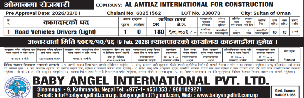 Male : Road Vehicles Drivers (Light) in OMAN, 1 no