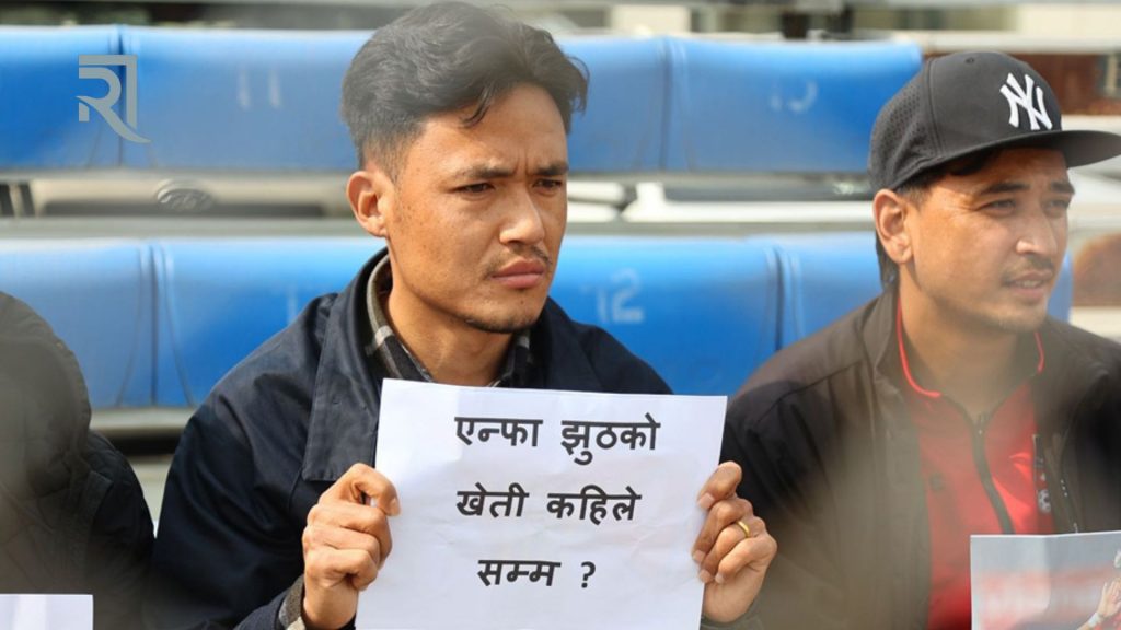 राष्ट्रिय लिगका दौरान नेपाल फुटबल खेलाडी संघका अध्यक्ष विक्रम लामासहित राष्ट्रिय टोलीका पूर्व कप्तान, वर्तमान उपकप्तान तथा खेलाडीले विरोध प्रदर्शन गरेका हुन् ।