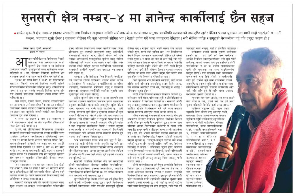 सुनसरी–४ मा ज्ञानेन्द्र कार्कीलाई छैन सहज