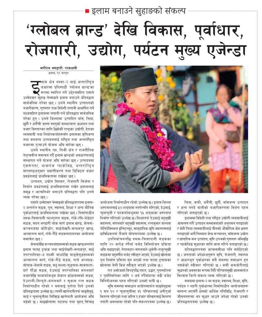 कांग्रेस महामन्त्री पौडेलद्वारा १४ बुँदे प्रतिज्ञापत्र सार्वजनिक