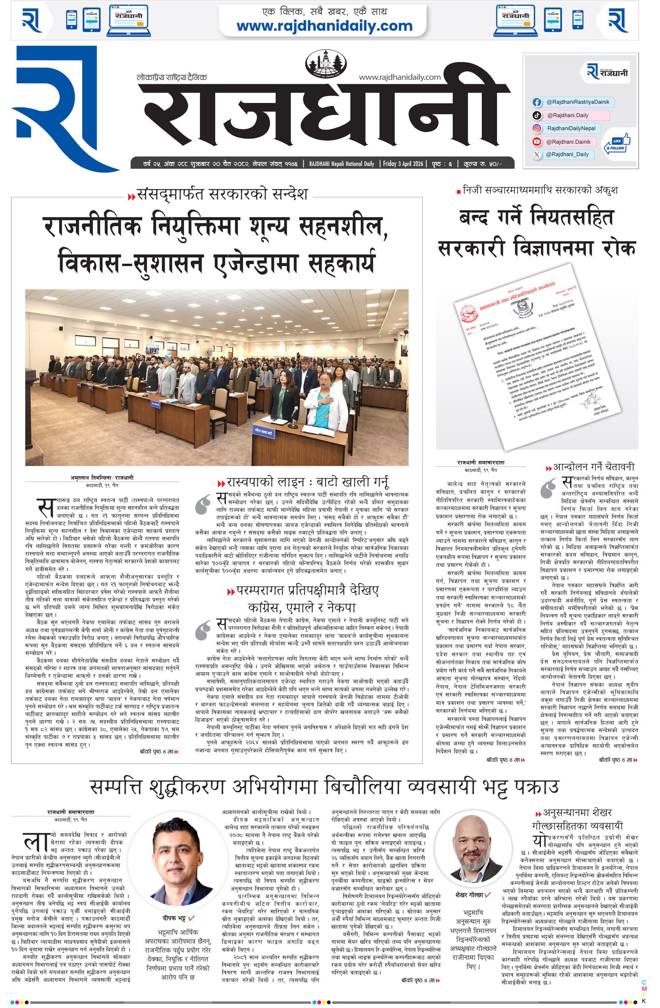 Rajdhani Rastriya Dainik : Chait-20, 2082 | Online Nepali News Portal | Nepali Online News Portal