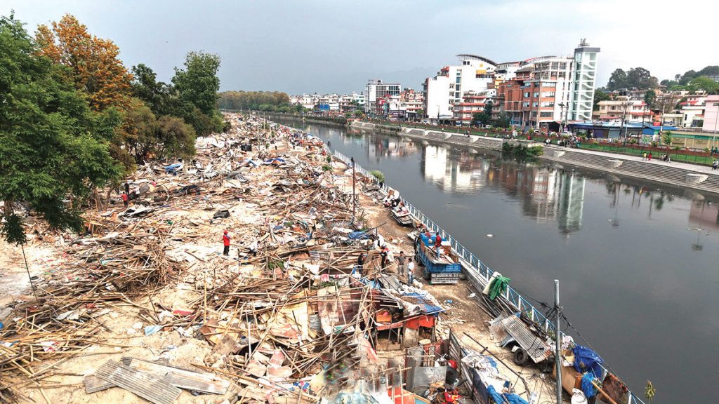 थापाथलीस्थित बागमती नदी किनारामा रहेको अव्यवस्थित बस्ती खाली भएको छ यहाँबाट आफू घरबार विहीन भएको बताउने ६ परिवारका सदस्यलाई दशरथ रंगशालामा लगिएको छ । बस्तीका टहरा हटाउनु अघि आफैँ स्थानान्तरण भएर जान चाहनेलाई महानगर प्रहरी बल र नेपाल प्रहरीले गन्तव्यमा पुग्न मानवीय र सवारी साधन तथा व्यवस्थापकीय सहयोग गरेका थिए ।