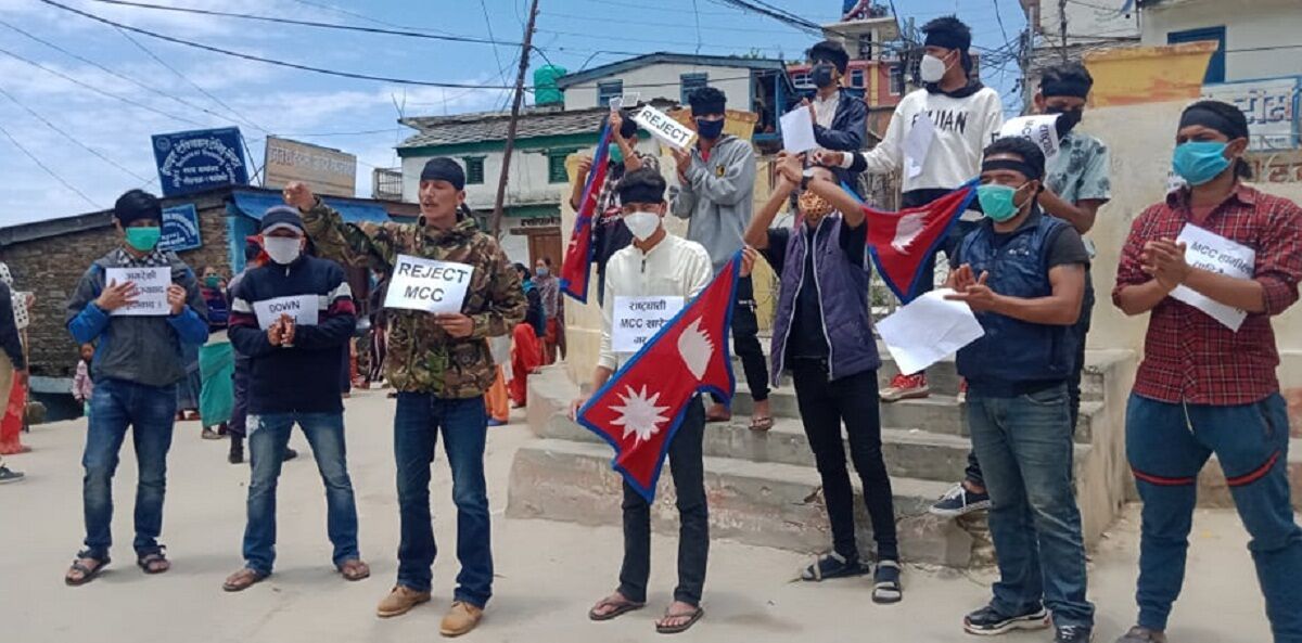 कालिकोट । कालिकोटका युवाहरुले एमसीसीको विरोध गरिरहेका छन् । हिन्दप्रसान्त रणनितिको हिस्सा भएकाले विश्वका अन्य मुलुकमा एमसीसी मार्फत अमेरिकाको दादागिरी प्रष्ट देखिएकोले एमसीसीको विरोध गरिएको हो ।