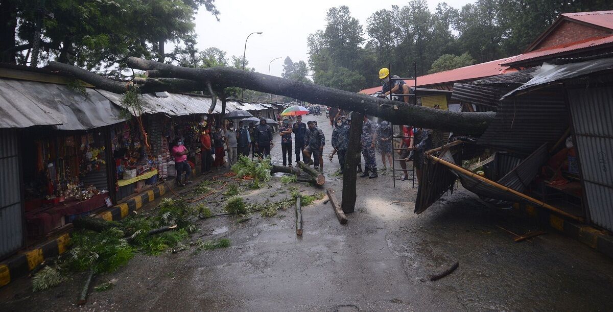 रुखले लागेर टहरामा क्षति भएको छ । रुख सिधै टहरामा ठोक्किएका कारण मानविय क्षति हुनबाट भने जोगिएको छ । अहिले ससस्त्र प्रहरीको टोली र स्थानिय मिलेर रुखलाई काटी आवत जावत खोल्न प्रयास भइरहेको छ ।