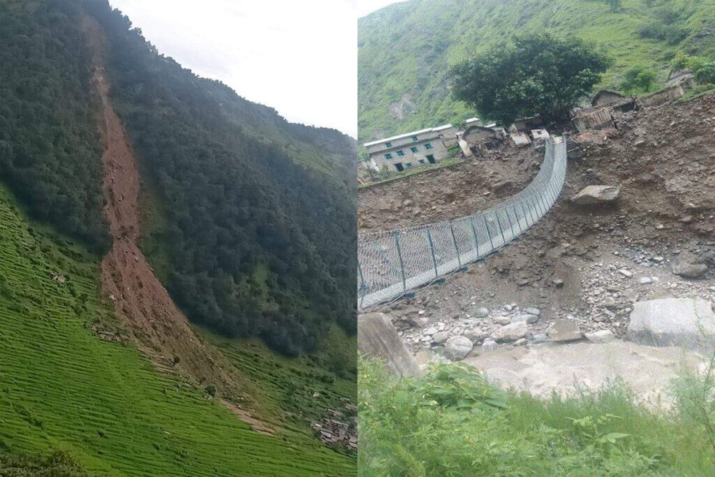 यस्तै जिल्लाको रास्कोट नगरपालिका वडा नं ६ को शान्तिघाटको खोलामा पहिरो आउदा हिँड्ने झोलंगे पुल पनि बगाउनुका साथै सिंगो गाउँनै जोखिममा रहेको छ । यस्तै रास्कोटकै वडा र्न ३, २ र १ पहिरोको बढीनै जोखिम रहेको नगरपालिकाले जनाएको छ । पहिरोले गाउँमै लिन सक्ने जनाएको छ । यस्तै जिल्लाको शान्नि त्रिवेणीको पोरिवनका ३२ घरधुरी अहिले पनि सामुदायिकक वनमा त्रिपालमा छन् । नरहरिनाथका तीनसय घरधुरी, रास्कोटका तीन सय घरधुरी, महावैको नकुगाउँ पनि पहिरोको उच्च जोखिम रहेको स्थानिय तहले दिएको जानकारीमा छ ।