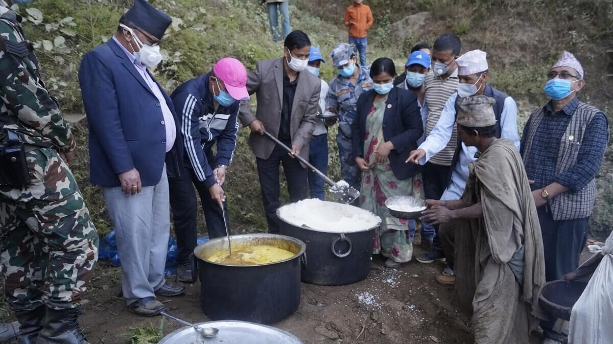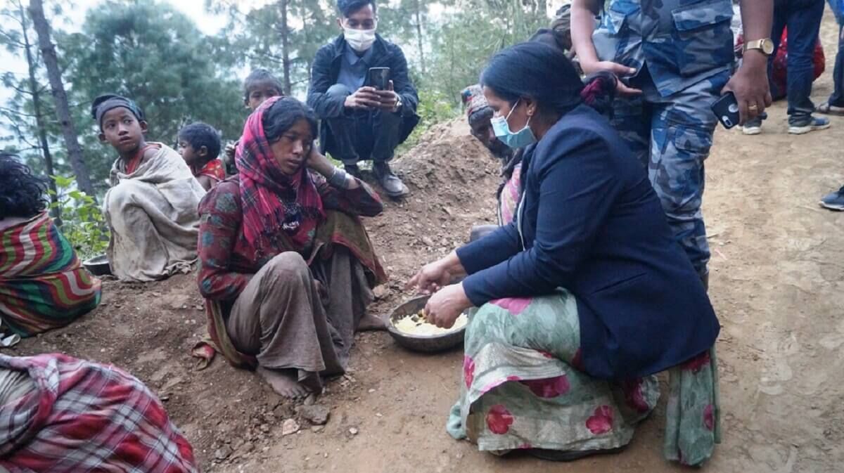सुर्खेत । कर्णाली प्रदेशका सरकारका मुख्यमन्त्री महेन्द्रबहादुर शाही, सामाजिक मन्त्री दलबहादुर रावल र कृषि तथा सहकारी मन्त्री विमला केसी लगायत कार्तिक ८ गते महाअष्टमीका दिन राउटे बस्तीमा पुगे । त्यो दिन प्रदेश सरकारको तर्फबाट वनका राजा राउटे समुदायलाई खसी, भात मुख्यमन्त्रीले हातबाट खुवाएर विजयादशमी शुभकामना दिए । प्रदेश सरकारले दिएको मासु र भात खाए । यो नै प्रदेश सरकारका उच्चपदाधिकारीहरुले आफैं भात मासु पकाएर खुवाएको पहिलो घटना हो ।