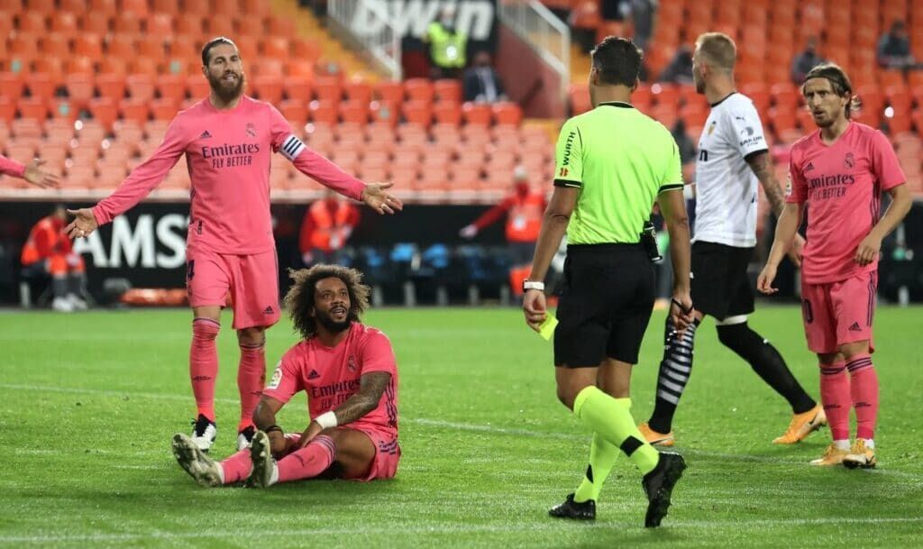 भ्यालेन्सियाले थप एक गोल उपहार पाएको थियो । करिम बेन्जेमाको गोल सान्त्वना बन्यो । भ्यालेन्सियामा आइतबार राति भएको खेलमा रियलले खेलको २३औं मिनेटमा करिम बेन्जेमाको गोलबाट अग्रता लिएको थियो । उनले मार्सेलोको पासमा गोल गरेका थिए । ३०औं मिनेटमा घरेलु टोलीले खेललाई बराबरी गर्ने मौका पाएपनि कार्लाे सोलेर पेनाल्टीमा चुके । सोलेरको पेनाल्टीलाई थिवाउट कोर्टुवाले बचाए पनि रिवाउन्डमा युनुस मुसाहले गोल गरे पनि भीएआरबाट मान्यता पाएन र भीएआरकै सहायतामा भ्यालेन्सियालाई पुनः पेनाल्टी प्रदान गरिएको थियो । जसमा यसपटक सोलेर चुकेनन् । ४३औं मिनेटमा भीएआरकै सहायतामा राफयल भरानको आत्मघाती गोल देखिएपछि भ्यालेन्सियाले खेलमा २–१ को अग्रता बनायो ।