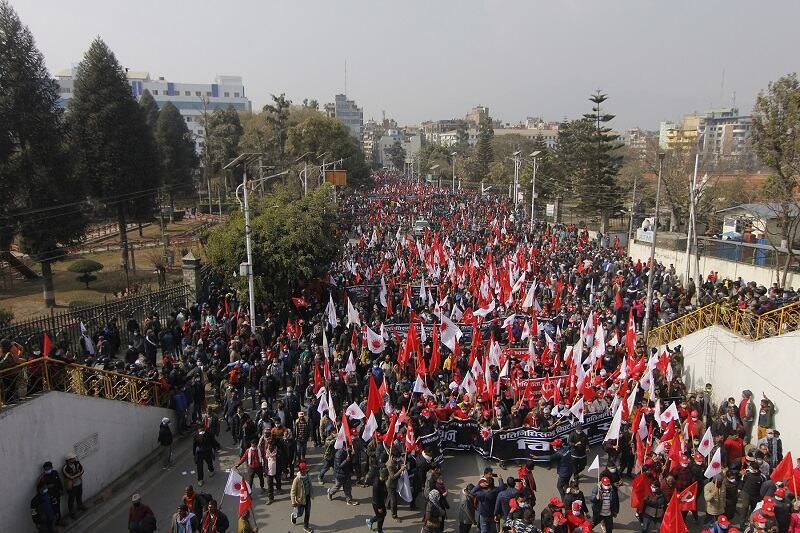 काठमाडौं । प्रतिनिधिसभा विघटनको विरोधमा नेपाल कम्युनिष्ट पार्टी (नेकपा) दाहाल–नेपाल समुहले शुक्रवार काठमाडौंमा शक्ति प्रर्दशन गरेको छ । काठमाडौंको विभिन्न स्थानहरुबाट निस्किएको जुलुस रत्नपार्कमा जम्मा भई बागबजार, पुतलीसडक हुँदै भृकुटीमण्डपमा पुगेर सभामा परिणत भएको थियो ।