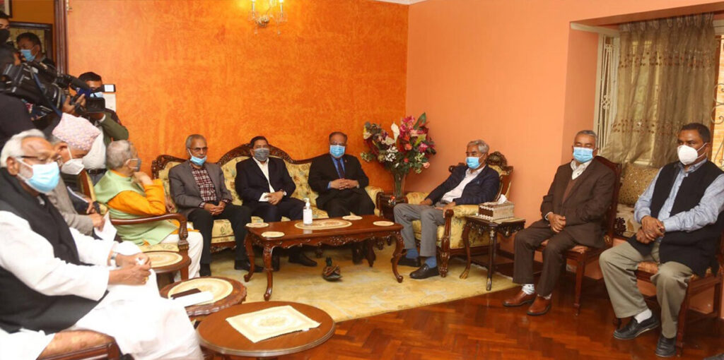बिहीबार सा“झ एमाले नेता नेपालले समेत बूढानीलकण्ठस्थित निवास पुगेर देउवालाई भेटेका छन् । भोलिपल्ट शुक्रबार साँझै माओवादी अध्यक्ष प्रचण्ड बूढानीलकण्ठ पुगेका थिए ।