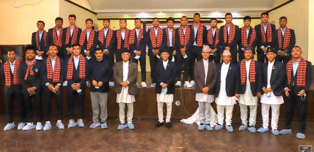 किरण कुमार लिम्बु (कप्तान), विकेश कुथु, दिप कार्की, रन्जित धिमाल, निशान खड्का, रोहित चन्द, अनन्त तामाङ, दिनेश राजवंशी, अजित भण्डारी, विराज महर्जन, छिरिङ गुरुङ, त्रिदेव गुरुङ, सुजल श्रेष्ठ, तेज तामाङ, एरिक विष्ट, सन्जोक राई, विशाल राई, सुनिल बल, रवि शंकर पासवान, अन्जन विष्ट, दर्शन गुरुङ, अभिषेक रिजाल, भरत खवास र बालगोपाल महर्जन (मुख्य प्रशिक्षक), किरण श्रेष्ठ (सहायक प्रशिक्षक) र विकास मल्ल (गोलकिपर प्रशिक्षक)