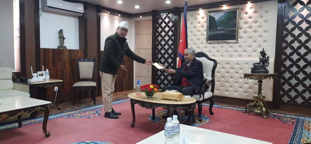 राप्रपा अध्यक्ष राजेन्द्र लिङ्देन नेतृत्वको प्रतिनिधिमण्डलले प्रधानमन्त्री देउवालाई आइतबार प्रधानमन्त्रीको सरकारी निवास बालुवाटारमा भेट गरी ज्ञापनपत्र बुझाएको नेता मोहन श्रेष्ठले जानकारी दिए ।