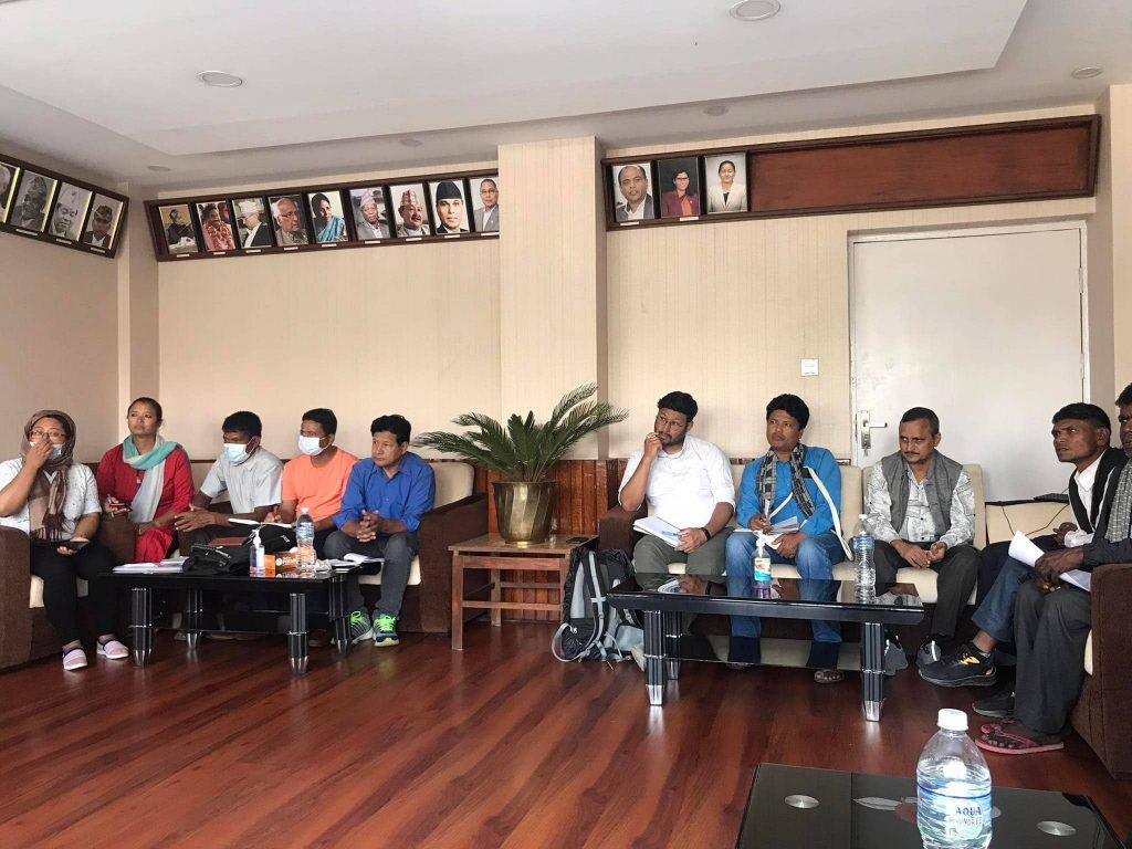 काठमाण्डौ । मधेस प्रदेशका ८ वटा जिल्लाहरुमा मुक्त हुन बाँकी हरवाचरवाको नाममा रहेको अनुचित ऋण खारेजी सहित मुक्तिको घोषणा गरि मुक्त हलिया, कमैया, कमलरी र हरवाचरवाको बजेट सहितको एकिकृत पुनस्र्थापना घोषणा गर्न माग गर्दै कृषि बधुवा मजदुरहरुः हरवाचरवा, मुक्त हलिया तथा कमैयाका संगठनहरु लगायत अधिकारकर्मीहरु र विकास साझेदारका प्रतिनिधीहरुले आज भूमि ब्यवस्था, सहकारी तथा गरिबी निवारण मन्त्री माननीय शशी श्रेष्ठलाई भेटेर छलफल गरेका छन् ।