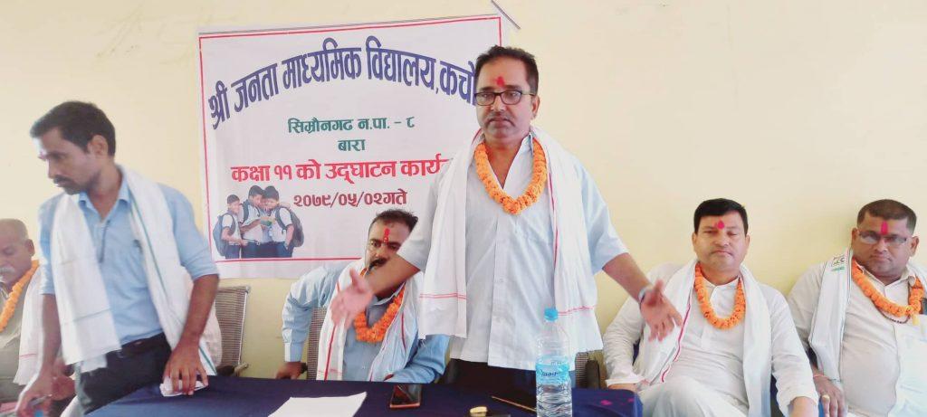 बारा । बाराको ग्रामीण भेगमा छोरी बुहारीलाई उच्च शिक्षा हासिल गर्न सहज हुने नेपाल कम्युनिष्ट पार्टी एकीकृत समाजवादीका केन्द्रीय निर्वाचन समिति सदस्य बतहु राय यादवले बताएका छन् । सिम्रौनगढ नगरपालिका वडा नम्बर ८ कचोर्वाको श्री जनता माध्यमिक बिधालयमा कक्षा ११ को उदघाटन गर्दै यस भेगका विधार्थी २५ देखि ३५ किलोमिटर पुर्व कलैया वीरगन्ज जाने बाध्यताको अन्त्य भएको बताए ।