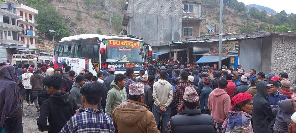 बिहान बसपार्कबाट सबै सवारीका साधन सञ्चालन भए पनि दिउँसोबाट पुनः सडक अवरुद्ध गरिएको हो । शनिबार दिउँसो बझाङको सदरमुकाम चैनपुर नजिकै बसले ठक्कर दिँदा सुर्मा गाउँपालिका–३ का तीन वर्षीय बालकको मृत्यु भएको थियो । बसको ठक्करबाट सुर्मा गाउँपालिका–३ का धनबहादुर बोहराको छोरा ३ वर्षीय सरगम बोहराको मृत्यु भएको हो । सदरमुकाम प्रवेश गर्ने पक्की पुल नजिकै सडकमा खेलिरहेका बालकलाई पवनदूत यातायातको सुपप्र ०२–००१ ख १११९ नम्बरको बसले शनिबार दिउँसो २ बजेतिर ठक्कर दिएको थियो ।