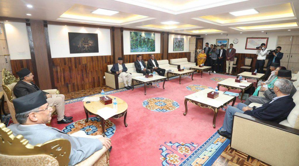 मंगलबार सभामुखको निवासमा भएको छलफलमा भने प्रधानमन्त्री एवं माओवादी केन्द्रका अध्यक्ष प्रचण्ड, कांग्रेस सभापति शेरबहादुर देउवा र एमाले अध्यक्ष ओली सहभागी थिए । यसैगरी, एमालेका प्रमुख सचेतक पदम गिरी, माओवादी केन्द्रका प्रमुख सचेतक हितराज पाण्डे, कांग्रेस सांसद न्यौपाने, महान्यायाधिवक्ता दीनमणि पोखरेल र पूर्वमहान्यायाधिवक्ता रमेश बडाल पनि सहभागी थिए ।