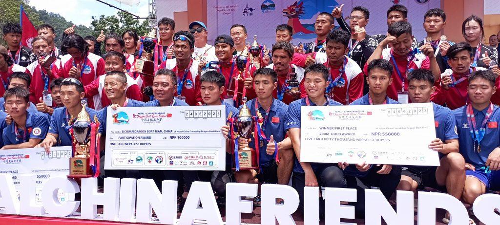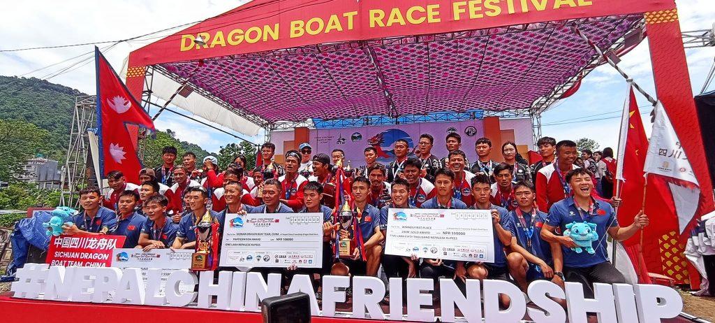 पोखरा । पोखरामा आयोजित नेपाल–चीन मैत्रीपूर्ण ड्रागन बोट रेस फेस्टिभलमा चीनको सिचुवान ड्रागन बोटले दोहोरो उपाधि जितेको छ । २०० र ५०० मिटर गरी दुवै इभेन्टमा सिचुवानको टिम प्रथम भएको हो । ५०० मिटर स्टे«ट ट्रयाक रेसमा सिचुवाले निर्धारित दुरी २ः२०ः९० मिनेटमा पूरा गरेको हो । २०० मिटरतर्फ उसले निर्धारित दुरी ००ः५३ः८१ मिनेटमा पूरा गरेको हो ।