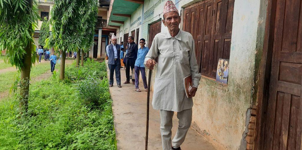 ‘सानोमा पढ्न पाइनँ, गाउँमा पनि आफूसँग गफगाफ गर्ने साथी पनि भेटिएनन्’, उनले भने, ‘बुढेसकालमा भए पनि केही कुरा सिकौँ भनेर स्कुल पढ्न आएको हुँ ।’