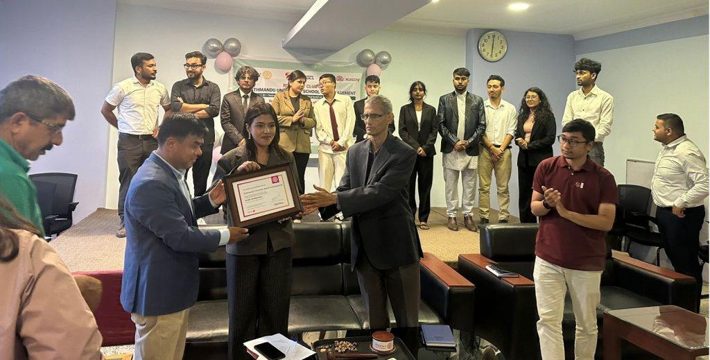 काठमाडौँ । काठमाडौँ बिश्वबिद्यालय अन्तर्गत ललितपुरमा रहेको काठमाडौं युनिर्भसिटी स्कुल अफ म्यानेजमेन्ट (कुसोम) मा रोटार्क्ट क्लव गठन भएको छ। सोमबार साँझ कुसोममा आयोजित एक समारोहबीच सो क्लव गठनको औपचारिक घोषणा भएको हो।