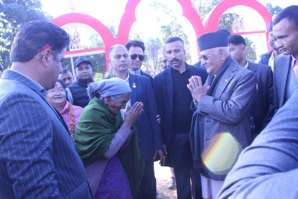 बृद्धा थापालाई बैतडीबाट निर्वाचित सांसद दामोदर भण्डारीले ओलीसंग भेट गराइदिए । उनले सबै जनताको घरघरमा सुबिधा पु-याउनु भन्दै आर्शिवाद दिइन् । ओलीले मुस्कुराउदैँ बृद्धाको आर्शिवाद ग्रहण गरे ।