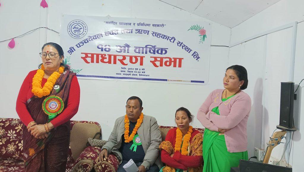 दैलेख । पञ्चदेवल वचत तथा ऋण सहकारी संस्थाको १४औं बार्षिक साधारण सभा सम्पन्न भएको छ। संस्थाका अध्यक्ष मिना बिसुन्केको अध्यक्षतामा दैलेख सदरमुकाममा सोमबार साधारणसभा सम्पन्न भएको हो ।