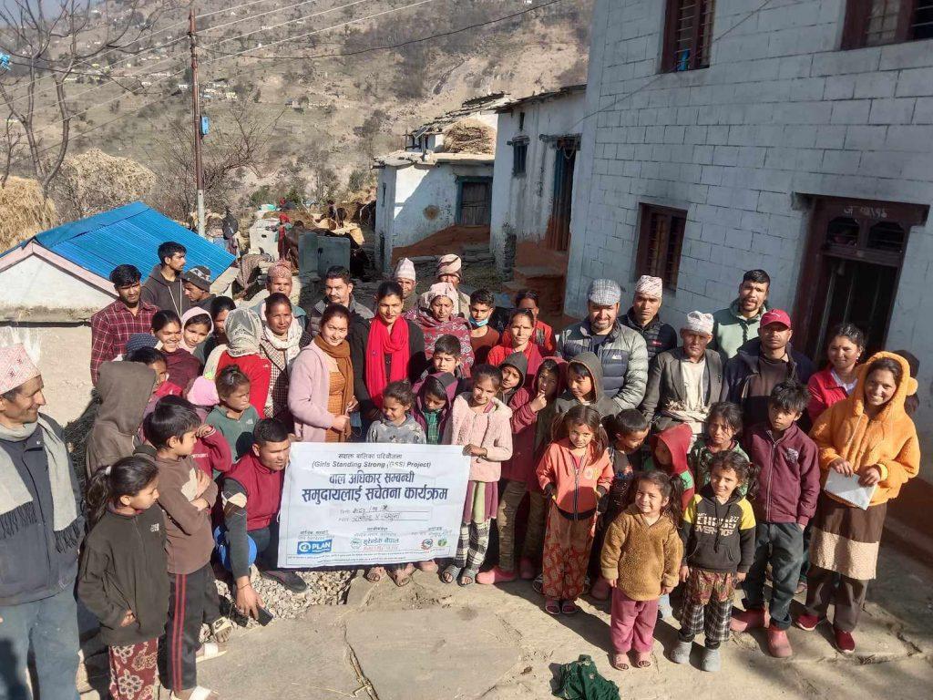 वडा बालअधिकार समिति द्वारा रास्कोट नगरपालिका वडा नं ४ मा वृहत समुदायमा सचेतना र्याली गरिएको हुरेन्डेक नेपालका फिल्ड सुपरभाइजर अनिता भारतीले बताइन । बाल बिवाह गर्नु हुदैन, बालविवाहले पुराउने हानि नोक्सानि ’bout सचेतना दिने र बाल बिवाह न्युनिकरणका लनगी वडा पालिकाले पनि बाल बिवाह गरेमा राज्यबाट पाउने सेवा सुविधा समेत बन्द गर्ने वडाअध्यक्ष दिनेश संज्यालले बताए । २० वर्ष पछि विवाह गरेमा प्रोत्सान र उमेर नपुगि बिवाह गरेमा सेवा सुविधाबाट बञ्चित गर्ने बताए ।