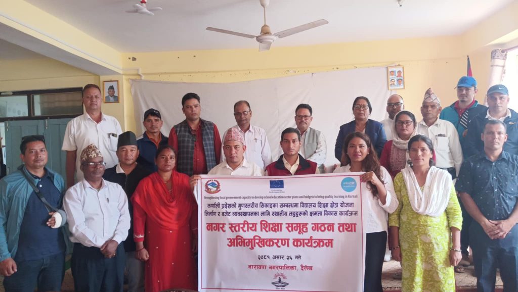 दैलेख । नारायण नगरपालिकामा स्थानिय शिक्षा समूह गठन भएको छ । नारायण नगरपालिका दैलेखका उपप्रमुख तप्ता कुमारी थापाको संयोजकत्वमा १५सदस्यीय नगर स्तरीय शिक्षा समूह गठन गरेको हो ।