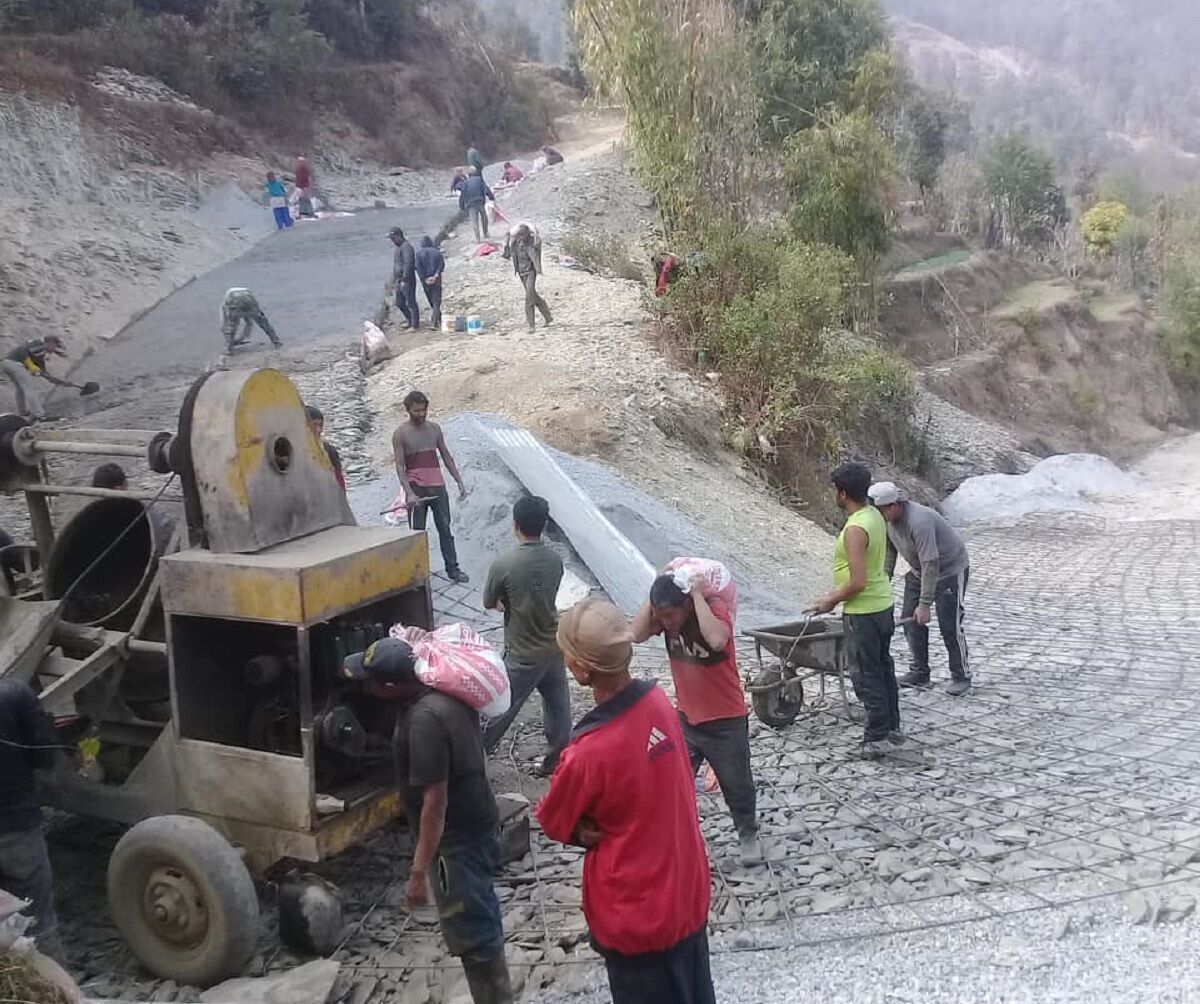 धम्जामा धमाधम सडक स्तरोन्नती र ढलानको काम