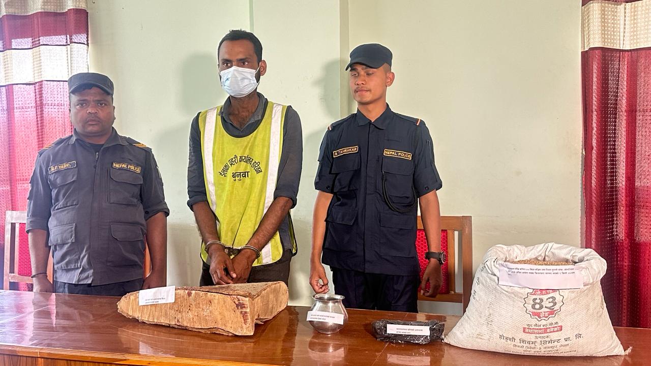 काठमाडौं । प्रहरी भन्दै लुटपाट गर्ने व्यक्ति लागु औषध तथा सुनको सिक्रीसहित पक्राउ परेका छन्