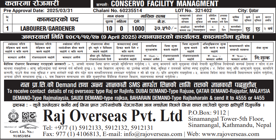 Male : LABOURER/GARDENER in Qatar, 10 nos