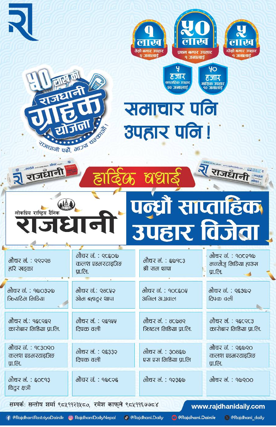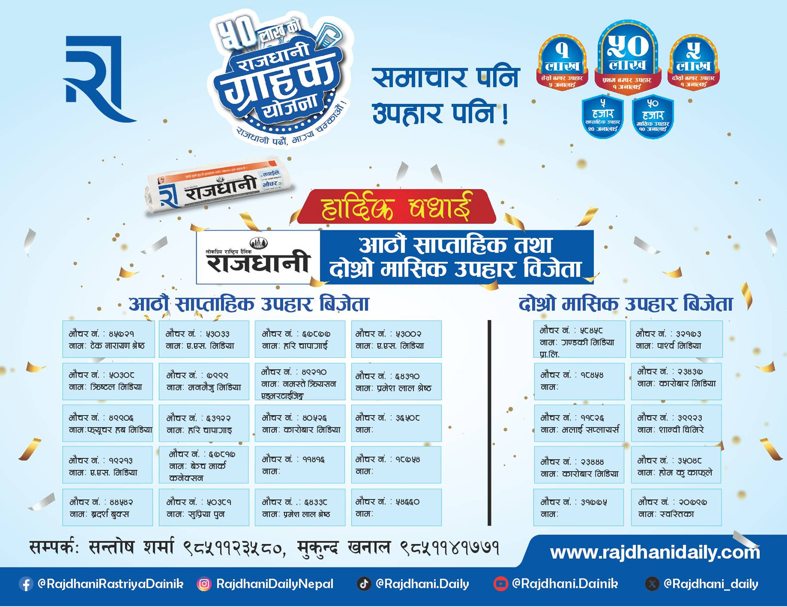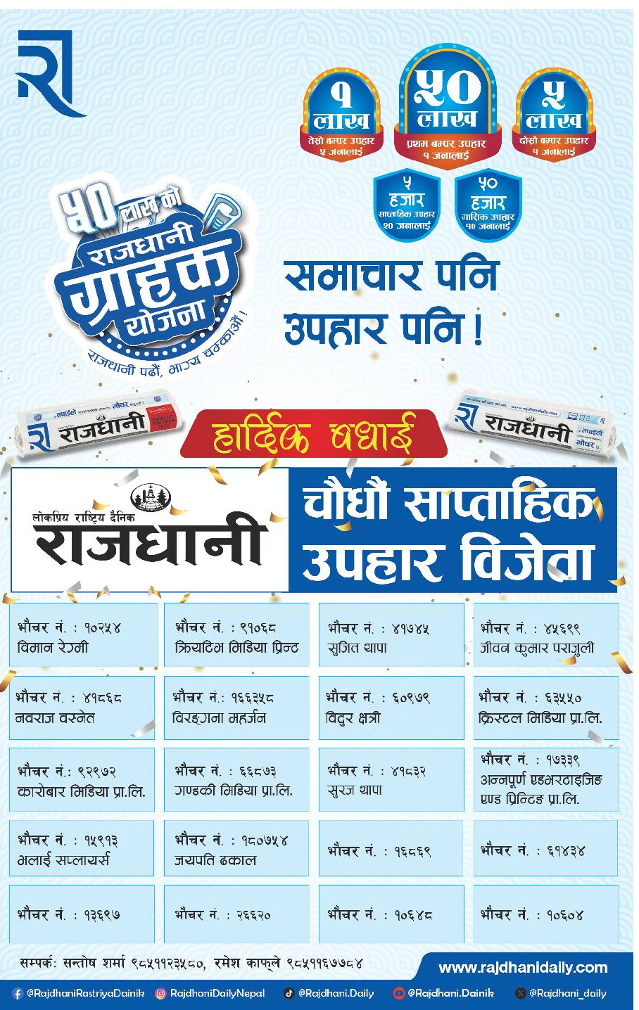 आठौं साप्ताहिक तथा दोश्रो मासिक राजधानी उपहार विजेता