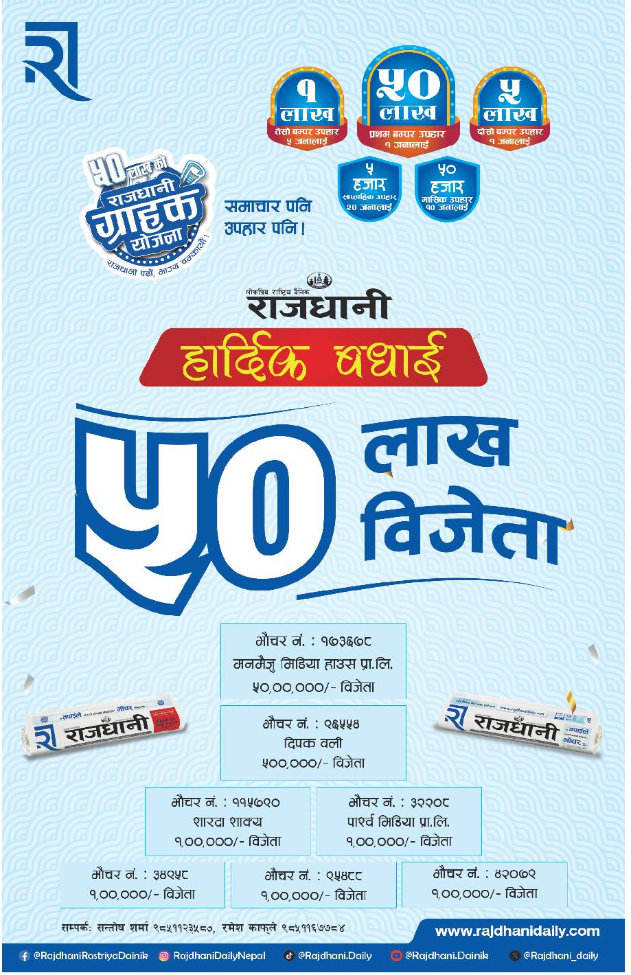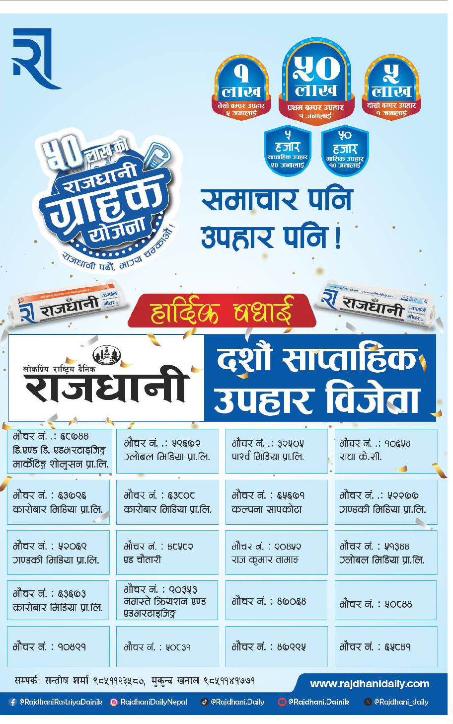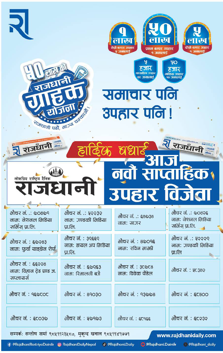 आठौं साप्ताहिक तथा दोश्रो मासिक राजधानी उपहार विजेता